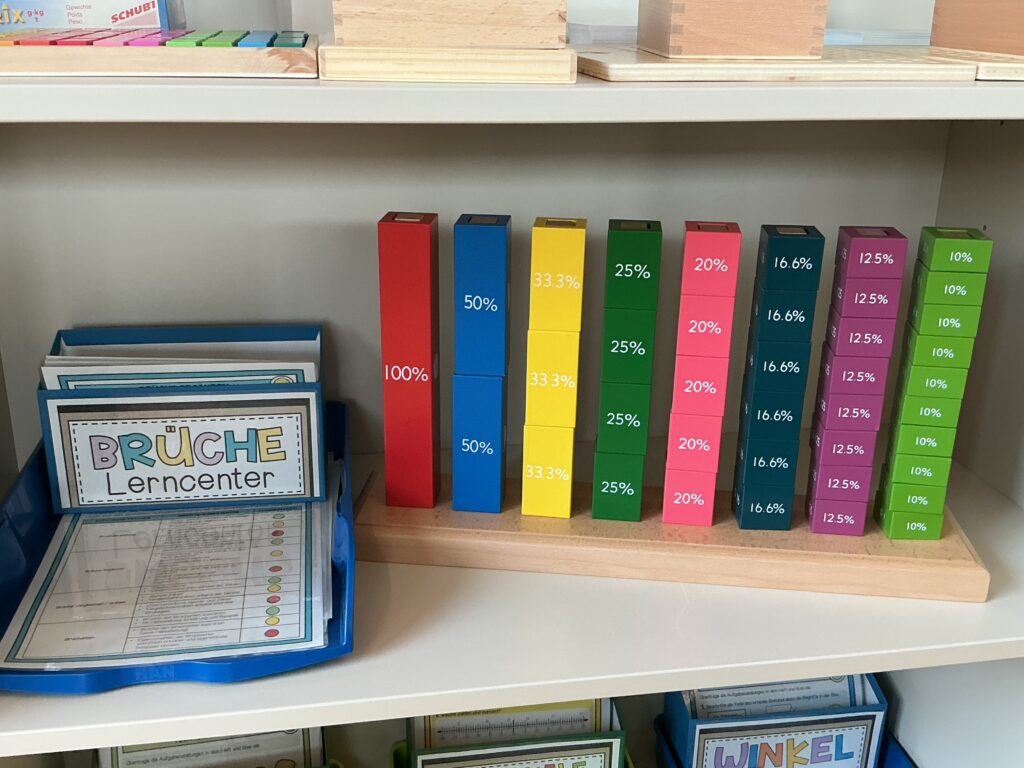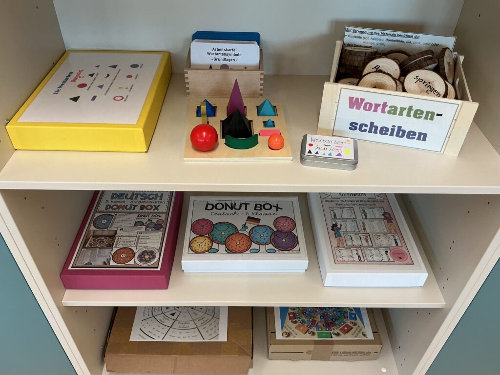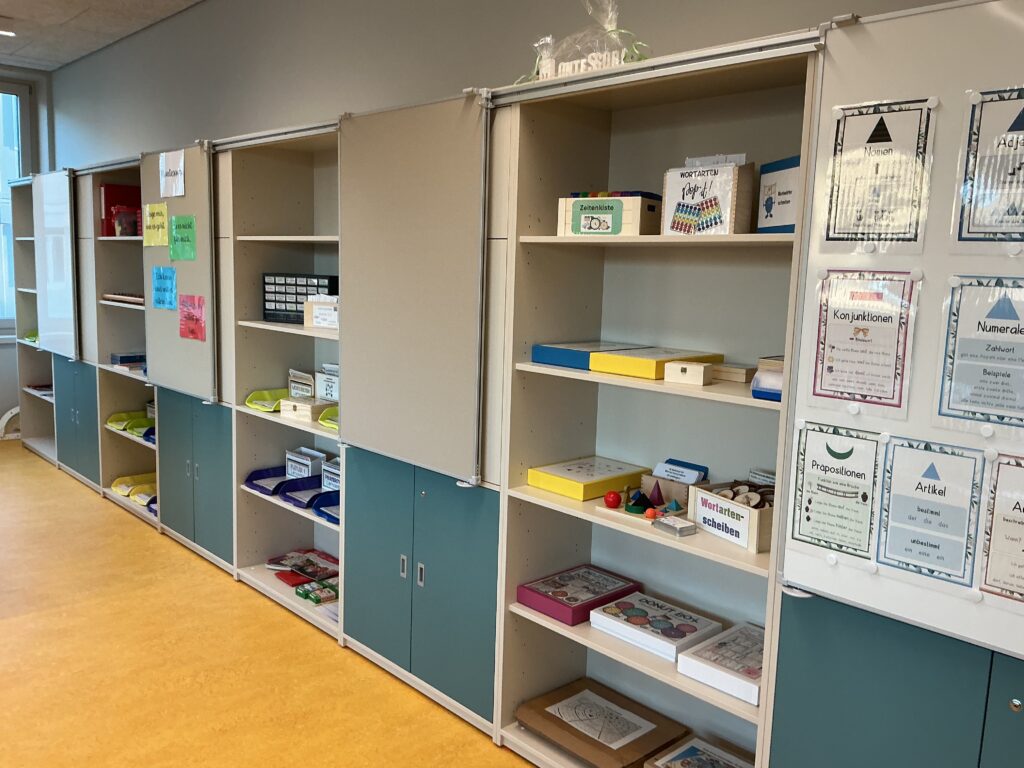 In der Freiarbeit spielt die vorbereitete Lernumgebung eine wichtige Rolle. Diese unterstützt die Selbstständigkeit des Kindes und bietet Orientierung, Struktur und Sicherheit. Unsere Schule hat daher einen eigens eingerichteten Freiarbeitsraum, indem ansprechendes Material zu einzelnen Fächern bereit steht. Verschiedene Möbel laden zum Arbeiten auf der Couch ein, zum Sitzen am Fenster oder zum gemeinsame Arbeiten am runden Tisch. Trennwände dienen als Abgrenzung zu anderen Bereichen, sodass eine Ruhe- und Privatsphäre entsteht.